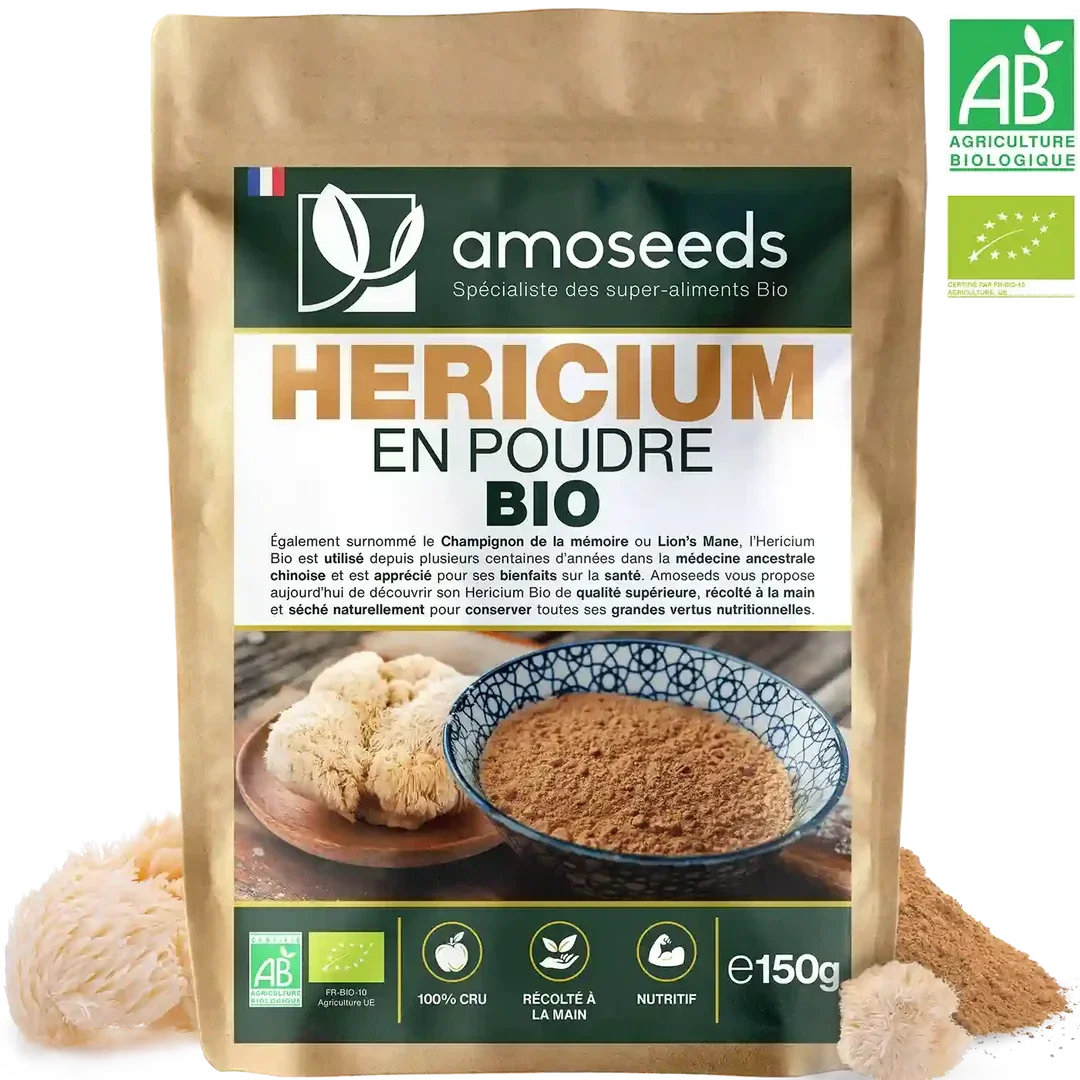 Un sachet de 150g d’Hericium en poudre Bio vous accompagnera environ 48 jours.