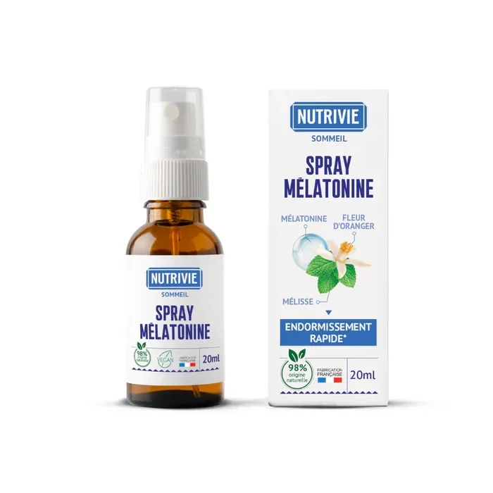 Le Spray Mélatonine Nutrivie offre une alternative naturelle aux somnifères, aidant à réduire le temps d’endormissement dès la première prise.